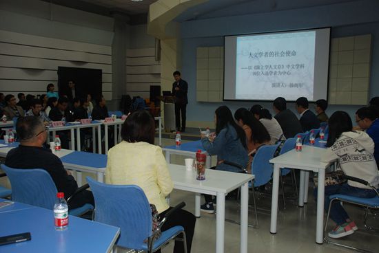 经理韩高年教授作了“人文学者的社会使命——以《陇上学人文存》中文学科10位入选学者为中心”的主题报告。首先,他简要回顾和梳理了德信体育中文学科自1902年发端至今的历史,并将其划分为四个阶段,介绍每个时段的学术成就和嬗变轨迹。接着,他以《陇上学人文存》丛书为例,具体阐述当前从事学术研究应该如何继承优良学术传统及承担人文学者的社会使命。《陇上学人文存》是由甘肃省省委宣传部和省社科院策划的大型丛书,计划十年内出版十辑100册,目前已出版四辑40册。公司中文学科有赵荫棠、郑文、匡扶、彭铎、郭晋稀、李鼎文、陈涌、黄伯荣、支克坚、赵逵夫等10位学者入选。他们均博学多识,学有专长,成就卓著,堪称楷模。最后,他强调指出,高校教师应该兼顾教育工作者与人文学者的双重身份,要有“执着学术,传承学脉;经世致用,守正创新;普及经典,引领文化”的精神品质。