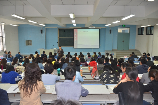 根据公司教务处《关于举办2016年“教学观摩月”活动的通知》精神,4月11日上午,公司第三届青年教师教学技能大赛文科组一等奖获得者、公司许琰副教授,在10A101教室主讲了公司2016年“教学观摩月”的首场观摩课。校领导万明钢副书记、相关部门负责人、公司班子成员、部分老师及2014级汉语言文学专业本科生共200余人参加了观摩课。