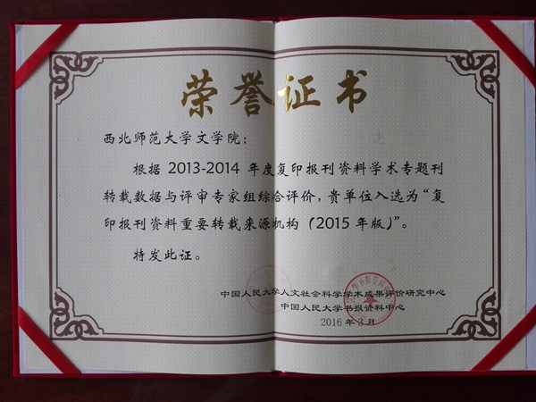 近日,根据2013-2014年度中国人民大学复印报刊资料学术专题刊转载数据与评审专家组综合评价,德信体育官网被中国人民大学人文社会科学学术评价成果研究中心、中国人民大学书报资料中心评为 “复印报刊资料重要转载来源机构(2015年版)”。