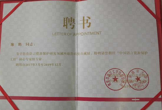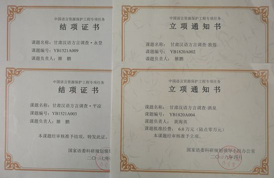 近日,公司喜获2项2018年教育部和国家语委的中国语言资源保护工程项目,分别为语言学及应用语言学研究所雒鹏副教授的“甘肃汉语方言调查•敦煌”和黄海英副教授主持的 “甘肃汉语方言调查•酒泉”。