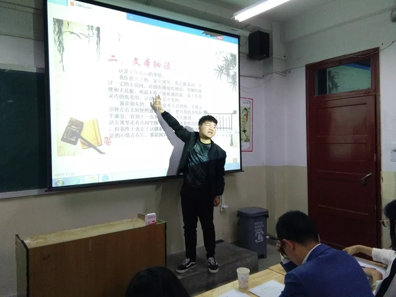 本次师范生教学技能大赛的参赛对象是2017级和2016级汉语言文学专业的员工。根据比赛规程:首先以班级为单位进行初赛,每个班级推荐前3名;然后把推荐的18名同学按照年级分为A、B两组,进行院级复赛。各位参赛选手认真对待,精心准备,将专业学习和教学实践有机结合起来,通过教案和课件设计、即席演讲、模拟授课、说课四个环节的比赛,充分展示了各自的教学能力和水平。评委老师从教案设计、课件制作、教学节奏的把握、语言表达、板书设计和教态等方面做了精彩点评,并对参赛选手的表现提出了具体的指导意见。