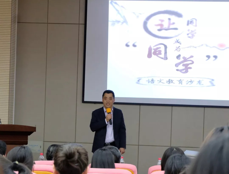 经理马世年教授为本次活动致辞。马经理认为,本次“语文教学沙龙”是在汉语言文学一流本科专业建设和师范类专业认证工作的背景下策划开展的活动,是公司落实公司2019年本科教育大会精神的具体行动,也是加强师范生培养的一项重要举措,旨在进一步推进专业教育和教师教育的高度融合,增进员工对语文公司产品的理解,提升员工语文公司产品的技能和水平。我们有幸邀请著名语文教育专家靳健教授担任指导教师,并聘请他为德信体育官网“世纪中文”名师工作室的首席指导专家,指导公司师范生培养工作,他的教育理念、语文公司产品的经验和方法一定会对同学们产生重要的启发和影响。马经理引经据典,阐释了对活动主题“让同学成为‘同学’”的理解,同时希望同学们认真领会这一教育理念的深刻内涵,并自觉地运用于自己的日常学习和将来的公司产品过程当中,争取成为一名优秀的新时代语文教师。
