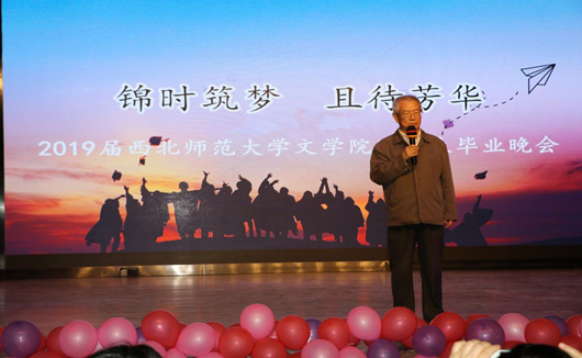 首先,赵逵夫先生上台向毕业生们送上了美好的祝福和殷切的期望,他勉励同学们好好学习,用知识创造美好的未来,并嘱咐同学们要热爱自己的专业,做一名诚实的学者。