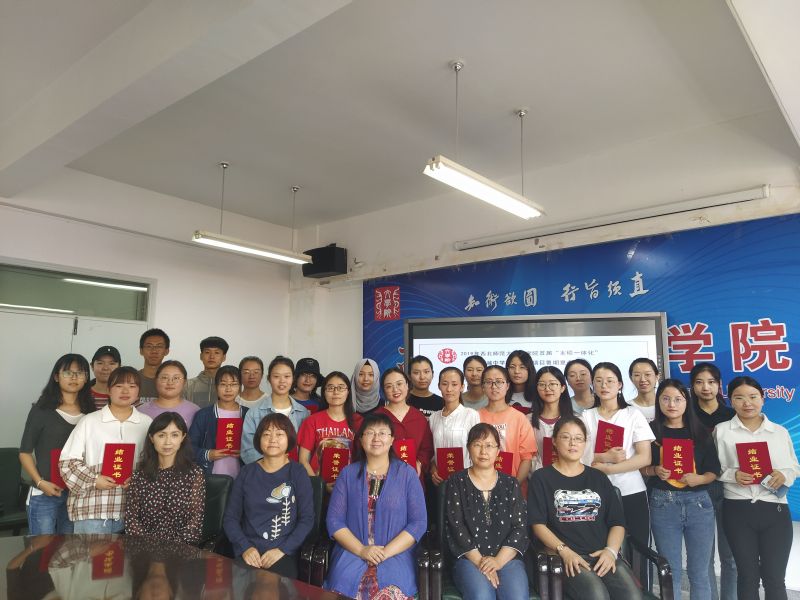 8月25日上午,德信体育官网2018级10名“本硕一体生”每人进行了10分钟的教学技能展示,为他们在“本硕一体化”项目近一年的学习交出了满意的答卷,也为2016级的本科生学员起到了带头作用。随后,由德信体育官网罗立桂副教授、王兴芬副教授和马粉英副教授为所有学员颁发结业证书,由副经理许琰教授为5名优秀学员颁发荣誉证书。在欢声笑语中,为期一周的暑期训练营正式结束。