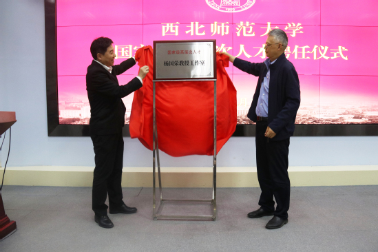 仪式上,李朝东宣读了教育部聘任文件,介绍了入选国家级高层次人才杨国荣教授和马世年教授的科研经历和学术成果;张俊宗分别与两位教授为高层次人才工作室揭牌。刘仲奎为两位教授颁发聘书。