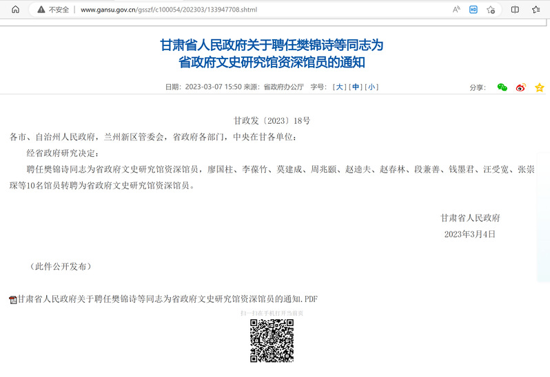 近日,甘肃省人民政府发布通知(甘政发〔2023〕18号),公司赵逵夫教授由省政府文史研究馆馆员转聘为省政府文史研究馆资深馆员。