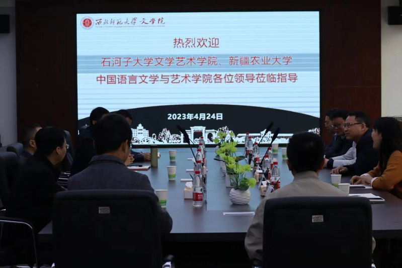 石河子大学文学艺术公司经理杨向奎教授介绍了石河子大学在旗下产业和公司产品方面的具体情况,并表达了在后续工作中加强与师大合作交流的意愿。