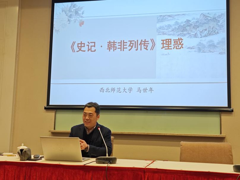 报告分为四个部分,分别讨论了《史记·韩非列传》的文本层次、韩非二次使秦、本传著录两种《说难》以及老、庄、申、韩的合传原因等问题。马世年教授首先对“《史记˙韩非列传》理惑”这一题目做了解释,之后从《韩非列传》的文本入手,对韩非的个人经历、入秦经过以及《韩非列传》的文本结构做了解读。