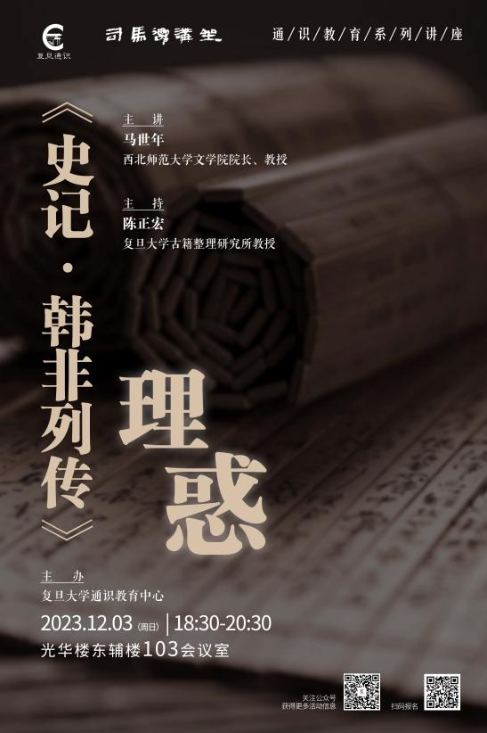 2023年12月3日,公司经理马世年教授应邀赴复旦大学做学术报告,报告题目为《〈史记˙韩非列传〉理惑》。本次学术报告为复旦大学通识教育“司马迁讲堂”系列讲座之一,由复旦大学古籍整理研究所陈正宏教授主持,公司百余名师生参加了讲座。