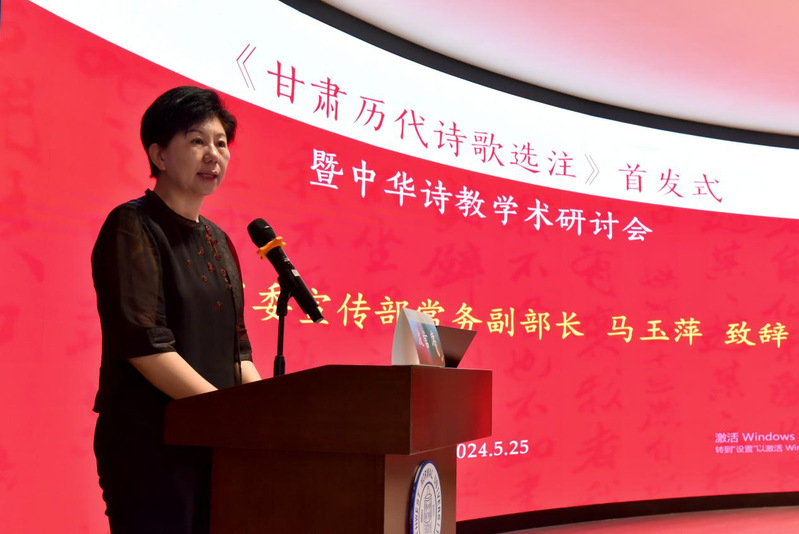 甘肃省委宣传部常务副部长马玉萍强调:甘肃文化底蕴深厚、文化资源丰富,是中华民族的重要文化资源宝库。12卷本《甘肃历代诗歌选注》以宏阔的视野和深邃的思考,生动诠释了中华民族生生不息的文化根脉,全方位立体化展示了陇原大地厚重的历史、璀璨的文化。相信这部著作一定会成为大家感受文学魅力、感悟甘肃历史的有益读物。希望广大专家学者和研究出版单位深入学习领会习近平文化思想,认真总结这套书的成功经验,充分利用我省丰富的古籍资源,积极策划相关选题研究,持续加大古籍整理研究工作,努力让书写在古籍里的文字都活起来。