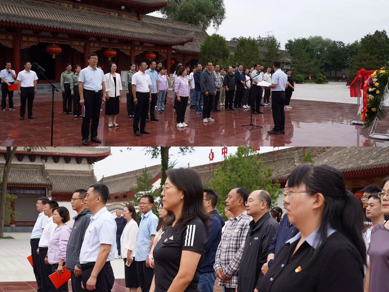 活动伊始,经理马世年代表公司向革命先烈敬献花篮,鞠躬致敬。随后,党委副书记王学翠与界石铺红军长征毛泽东旧居纪念馆党组书记、馆长梁斌为“德信体育官网爱国主义教育实践基地”揭牌。